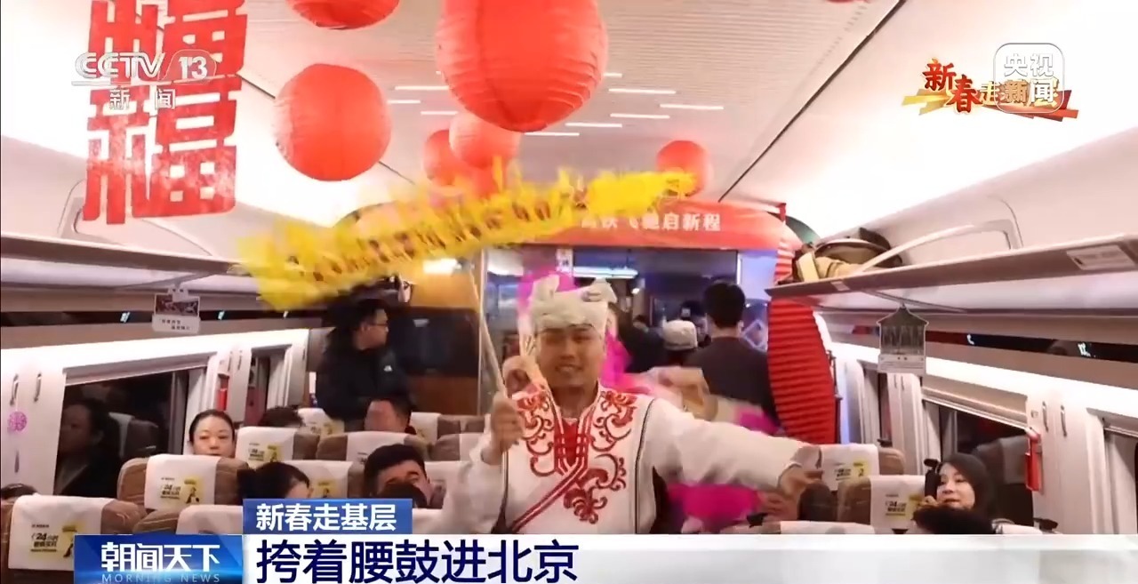 高塞东:这是我第一次坐火车去北京打腰鼓,那时候我们把腰鼓扛在肩上,怕磕磕碰碰,现在坐高铁又平稳又舒服。
