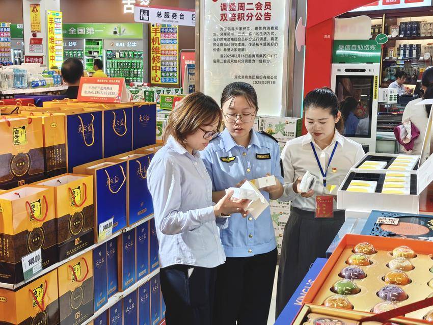 2025年中秋节前夕,红安县纪委监委联合县市场监督管理局在县内某商超开展“四风”问题监督检查。(红安县纪委监委供图)