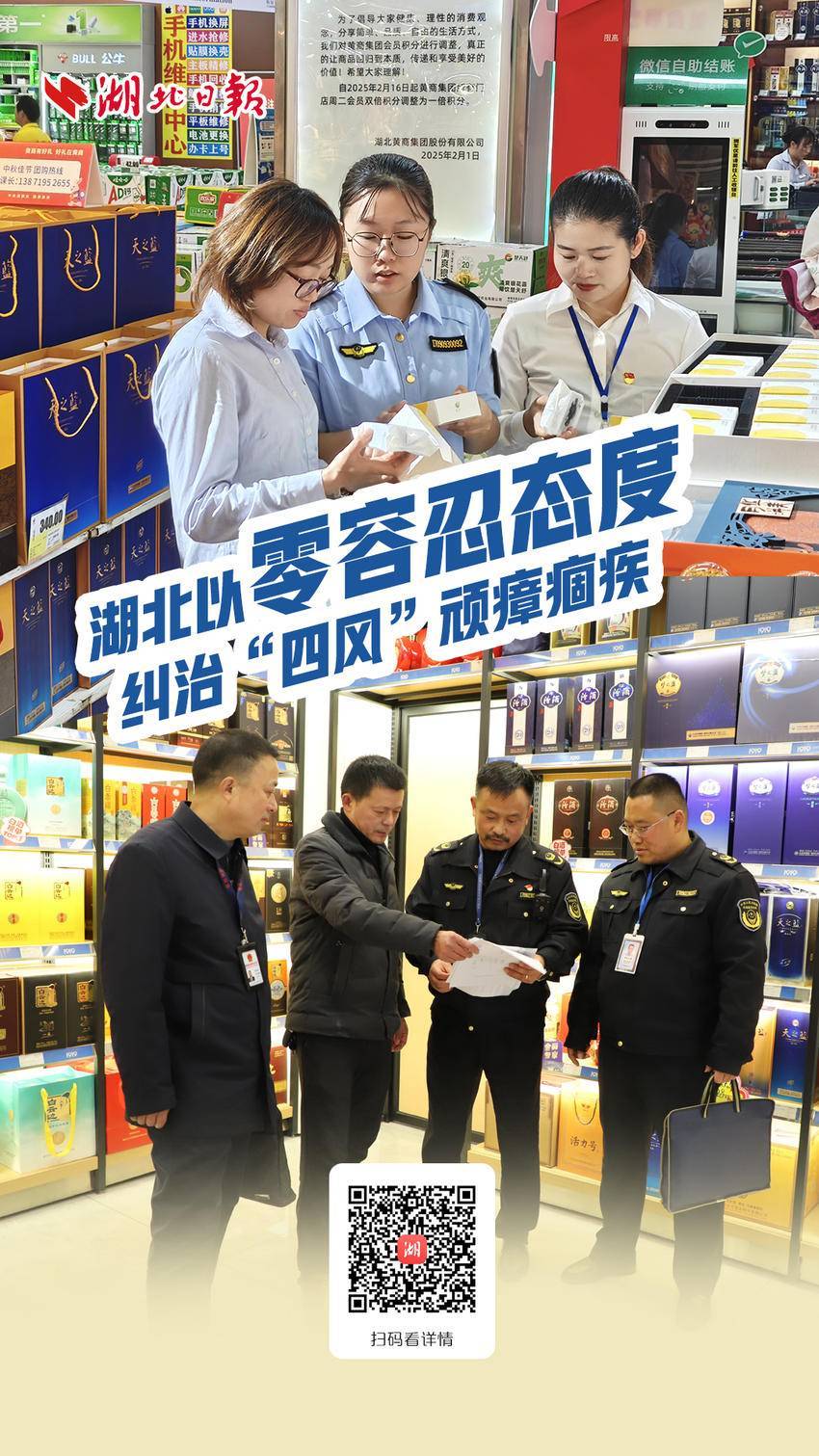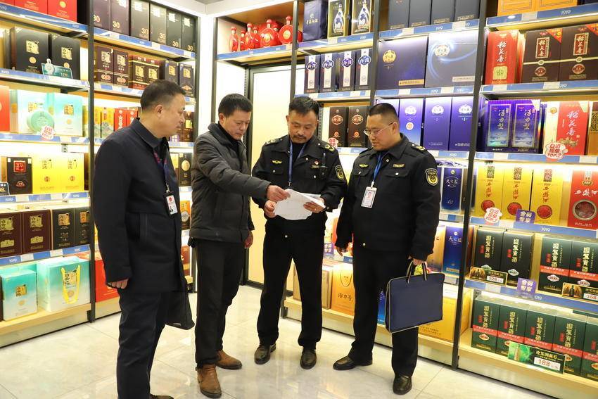 浠水县纪委监委工作人员正在某烟酒专柜对违规收送名贵礼品行为进行摸排。(浠水县纪委监委供图)