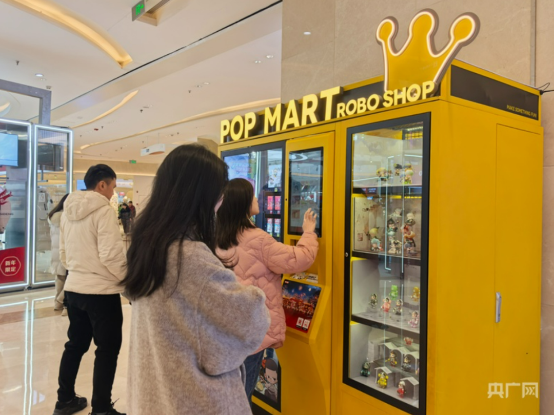 ▲长沙一家商场内,消费者在盲盒抽盒机上消费。(图源:央广网)