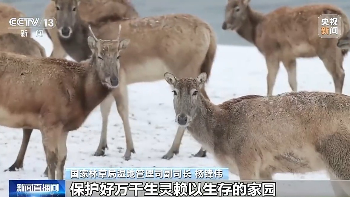国家林草局湿地管理司副司长 杨锋伟:这些灵动的生命,是湿地生态健康最直观的风向标。我国已形成独具中国特色的湿地保护发展新格局,保护好万千生灵赖以生存的家园和生态安全的战略空间。