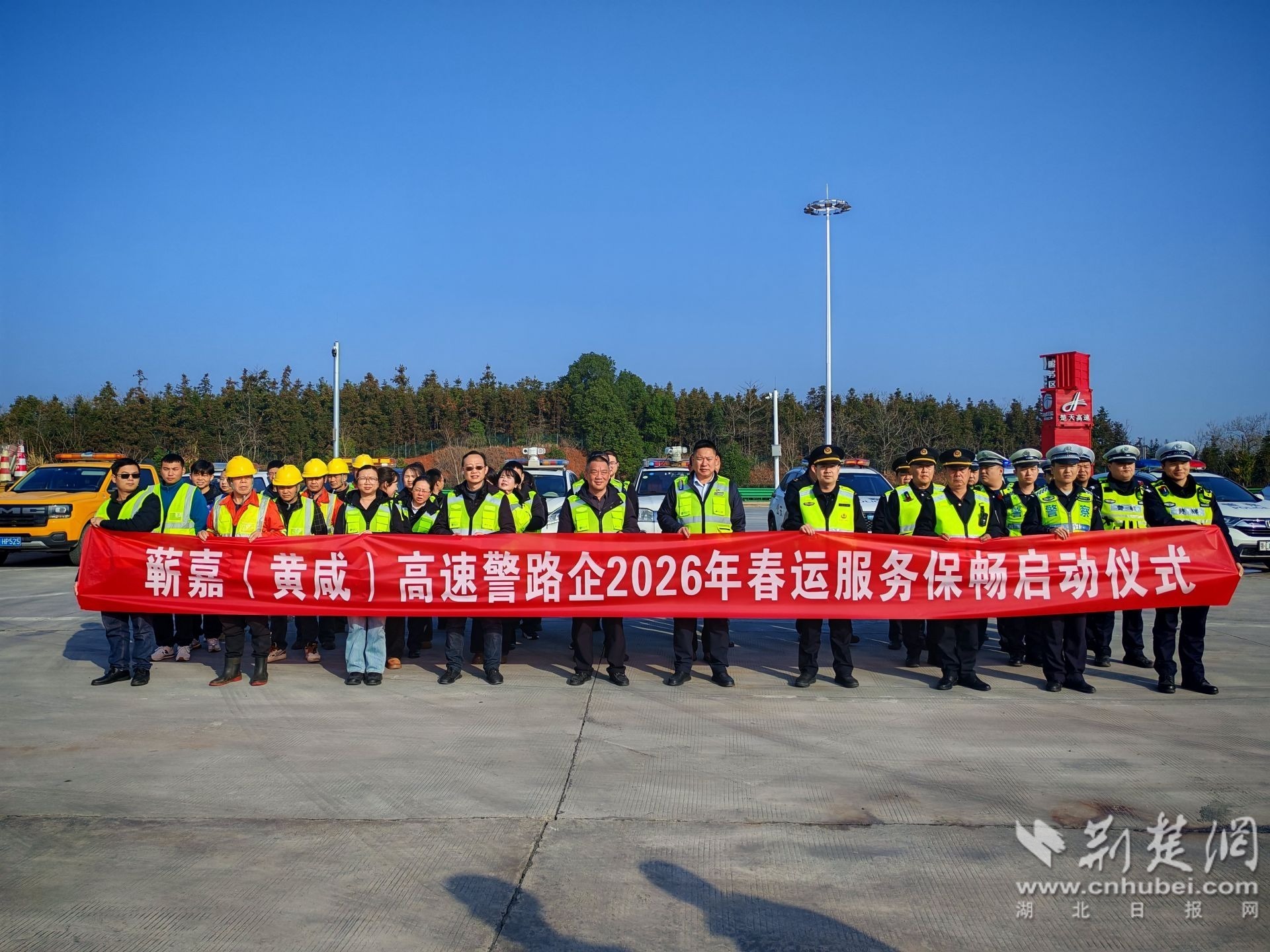 荆楚网(湖北日报网)讯(通讯员吕继高)2月2日,正值2026年春运首日,蕲嘉高速双溪服务区迎来了一场声势浩大的启动仪式。湖北省高速公路路政执法二支队四大队、六大队联合楚天咸宁公司、咸宁咸黄高速公路大队、黄石高速公路警察大队等多家单位,共同举行了春运启动仪式,旨在凝聚“一路多方”合力,守护司乘便捷出行、平安返乡,筑牢春运安全防线。