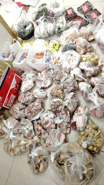孙女士介绍,她此次收到的年货里,有一整头猪的猪肉,有鸡、鸭、鱼和各类东北的特色美食,还有母亲亲手炸的豆腐泡等,“这些东西相比我们在上海买的,既便宜又好吃”。