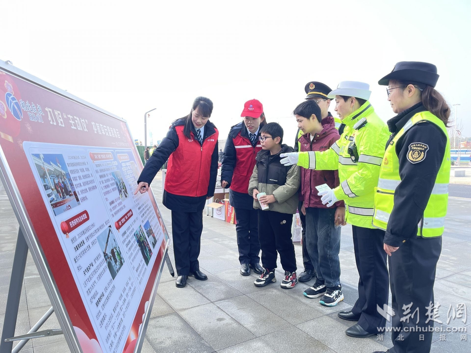 科技赋能,让春运服务更智能、更高效。现场,湖北高速交警孝感大队工作人员积极引导司乘扫码使用“云哨”等智慧出行平台,方便大家实时查询路况、天气及施工信息,持续深化“线上+线下”一体化宣传服务模式。服务区可变情报板滚动播放安全提示与实时路况,助力司乘智能规划行程、避开拥堵路段,提升出行便捷度。