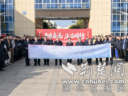 荆楚网(湖北日报网)讯(通讯员 万斌超 张正昆)2026年2月2日,春运首日,襄阳机务段携手襄阳铁路公安处、襄阳铁路运输检察院、襄阳铁路运输法院,共同开展“平安春运·法治同行”主题法治宣传活动,以精准普法筑牢铁路安全防线,为春运期间铁路运输安全平稳保驾护航。
