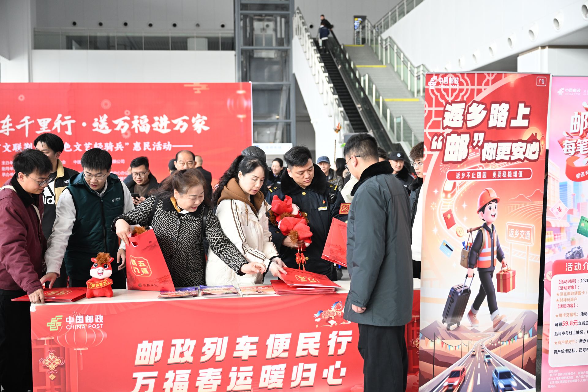 天门邮政分公司也积极参与,向旅客、车站工作人员赠送马年吉祥物、春联礼包、台历、挂历等新春礼品,并现场开展金融防诈骗知识宣传,助力守护群众的“钱袋子”。各文艺家协会向旅客赠送《竟陵风》《竟陵文学》《天门诗词》等文学刊物,现场还发放了《天门市民文明手册》,倡导广大群众文明节俭过节、健康生活,弘扬时代新风。