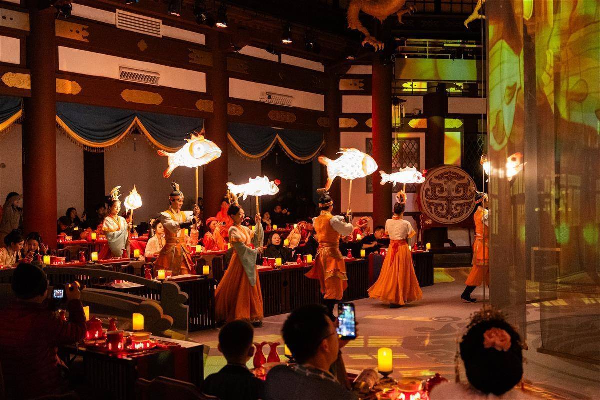 近年来,“边看演出边用餐”的沉浸式餐秀正成为文旅体验新趋势。美团旅行数据显示,2025年第一季度“沉浸式餐饮秀”搜索量同比激增近275%。洛阳“唐宫夜宴”、南京“金陵华梦宫宴”、重庆“渝味360碗·华礼宴”等项目,已成为许多城市的文旅新名片。