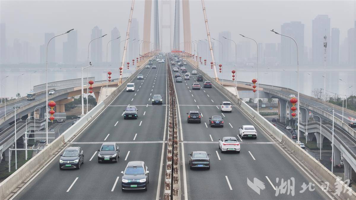 橘色桥体与串串红灯笼交相辉映,形成江面上一道亮眼的风景线。据悉,此次悬挂工作特别选用HDPE(防水防紫外线不褪色)材质灯笼,确保雨雪天气下景观效果持久。一抹抹“中国红”不仅点亮了城市地标,更传递出浓浓年味,为市民提前送上新春祝福。(湖北日报全媒记者 陈少哲 通讯员 谢卓维 摄)