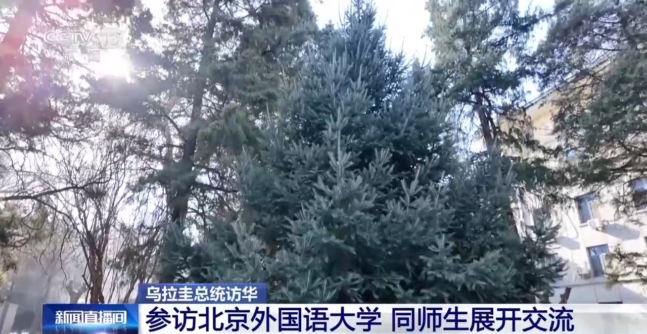 一棵高大的云杉,是2013年时任乌拉圭总统穆希卡访华时在北外种植的,奥尔西总统一行走进校园首先来到云杉树下,亲自为这棵象征中乌两国友谊的树木浇水、培土。