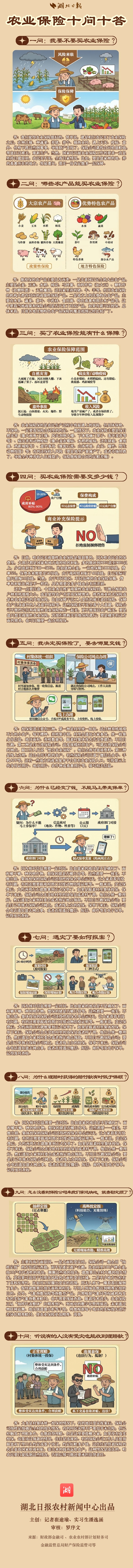 农业保险是国家保障粮食安全、稳定农业生产的重要政策工具。2026年中央一号文件强调,“强化价格、补贴、保险等政策支持和协同,健全种粮农民收益保障机制。”那么,政策性农业保险到底要不要买、怎么买、又有何用?我们梳理了一张清晰的长图,助你快速读懂它,为新春的耕作与全年的丰收,添一份安心。