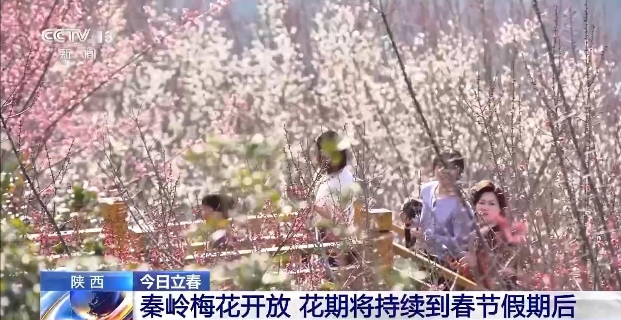 立春时节,陕西秦岭的梅花次第开放,吸引不少游客前来拍照打卡。