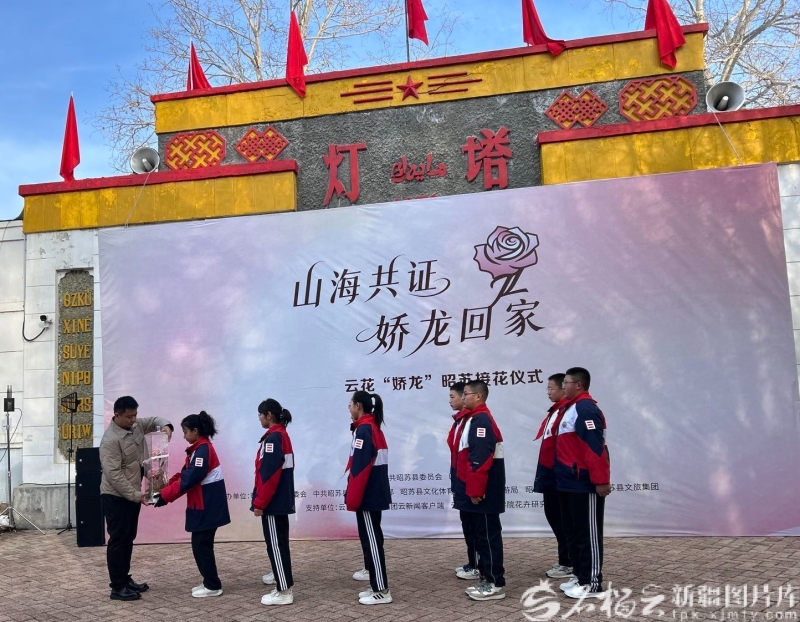 由昭苏县委、县人民政府主办的“山海共证 娇龙回家”——云花“娇龙”昭苏接花仪式在此温情举行。来自云南省农业科学院、云南日报云新闻客户端的代表,贺娇龙同志的亲友、同事及昭苏县党员干部、社会各界代表相聚于此,共同见证承载万千网友深情厚谊的“娇龙”月季安放“娇龙厅”的全过程。