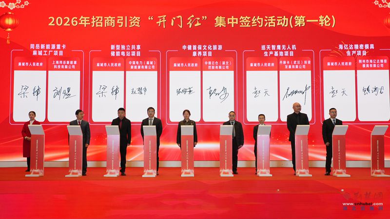 荆楚网(湖北日报网)讯 (通讯员 沈红星、胡雪莹、喻莉丽、余陆婷)战鼓催征,实干争先。2月3日,麻城市举行2026年招商引资“开门红”集中签约活动,现场签约39个重点项目,总投资112亿元,项目覆盖绿色建材、零部件、农产品加工、全域大文旅等多个领域。