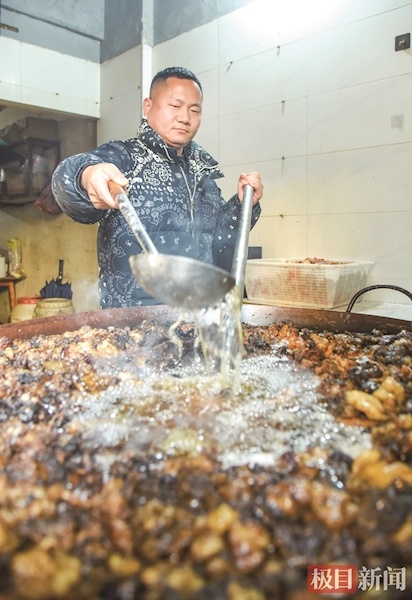 刘杨熬制牛油 摄影:楚天都市报极目新闻记者黄志刚