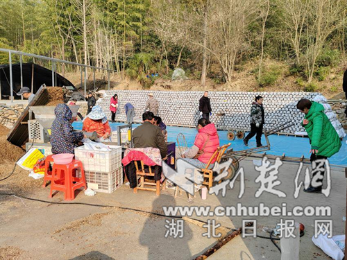 荆楚网(湖北日报网)讯(通讯员 金灿 易平雁)2月3日,京山市新市街道龙泉山村的香菇生产基地里热闹非凡。10余名村民围坐在机器旁分工协作,装料、封口、码垛等工作一气呵成,一排排雪白的香菇菌棒在蓝色防渗膜上整齐铺开,与远处山林相映成趣。村“两委”与市商务局驻村工作队,正和香菇生产大户易治宏一道,抢抓春节前关键期赶制袋料香菇,为新年产业发展抢得先机。