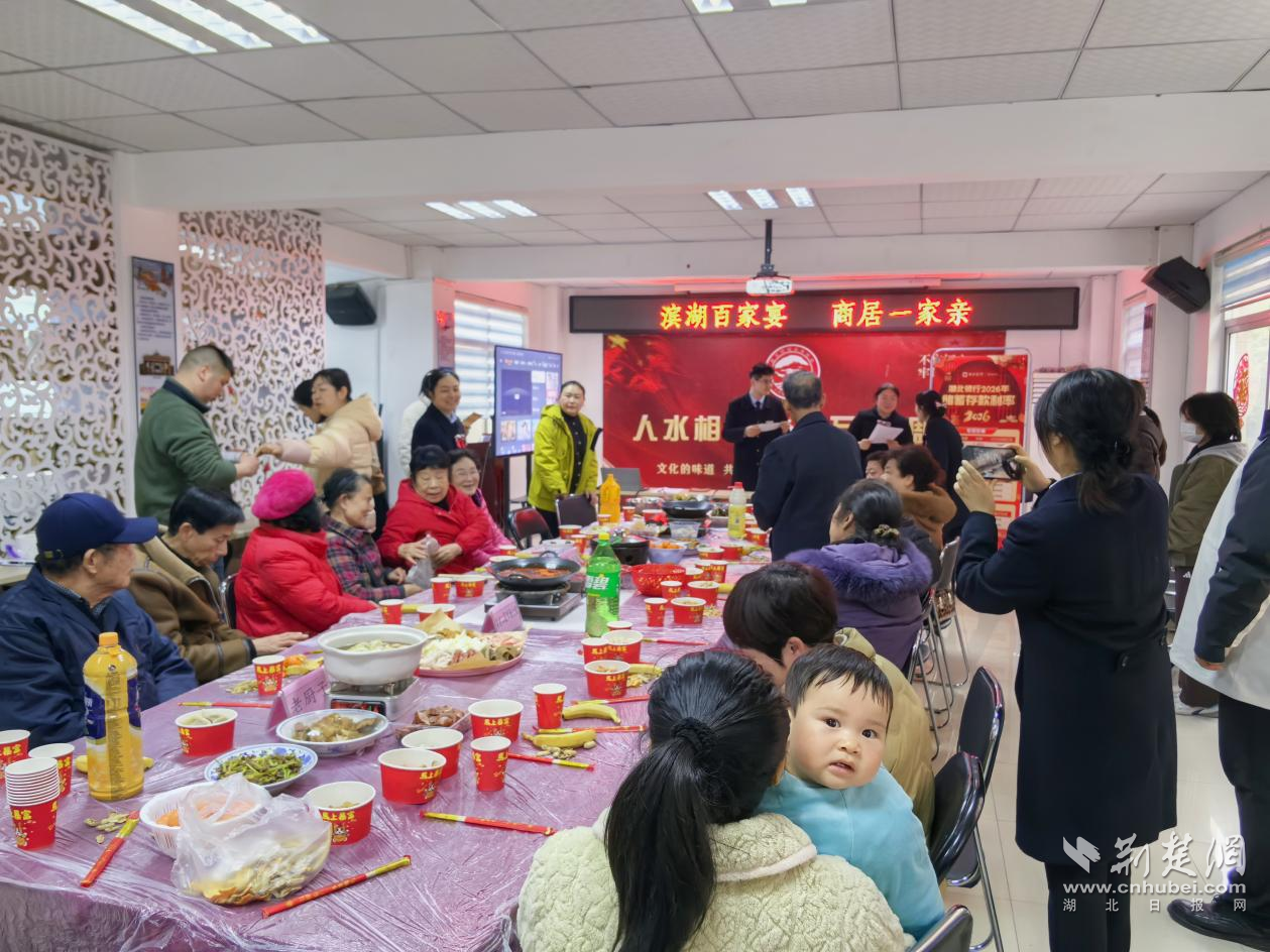 荆楚网(湖北日报网)讯(通讯员 杨华超)2月4日,荆州市沙市区滨湖社区在党群服务中心举办“滨湖百家宴 商居一家亲”活动。辖区居民与商户代表共聚一堂,共享美食、展示才艺,并围绕社区党群服务中心“亲民化”改造建言献策,共绘基层治理新图景。