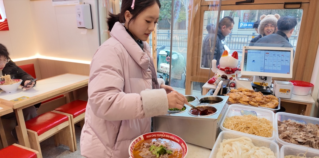 “学生党没多少收入,咱就把分量搞足、肉放多些,让他们吃好吃饱。”老板说,因为店铺靠近学校,学生顾客占了很大比例,所以一直坚持高性价比路线。不油腻的汤头、足量的牛肉、筋道的粉条,再配上免费续加的热汤,让这家小店成了学生们口中的“宝藏食堂”。即便要排队,大家也愿意等——“汤好喝,分量实在,多等几分钟完全值得!”