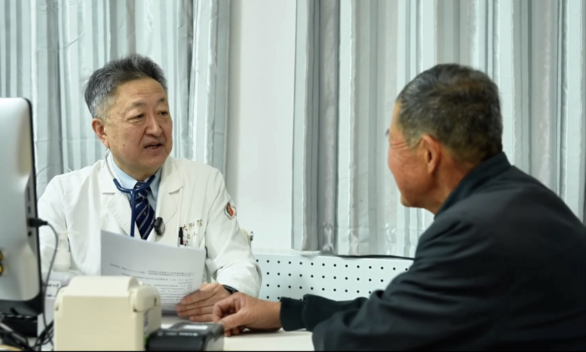2025年12月,吉林大学第一医院普外中心执行主任、胃结直肠外科主任王权(右一)为患者吴志平(左一)问诊。(杨秋蓉 摄)