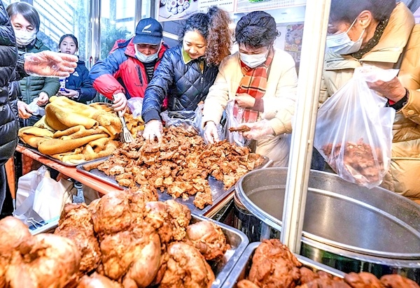 炸圆子的香味弥漫着展厅,滋滋作响的油锅旁边,是站着长队等待购买的市民。从黄陂三鲜、新农牛肉、汪集鸡汤、江夏蒸肉等特色美食,到蔡甸莲藕、秭归脐橙、恩施猪肉等湖北知名农货,再到湖北老字号天团、武汉百年老店、现售的名品吸引了众多市民驻足选购。