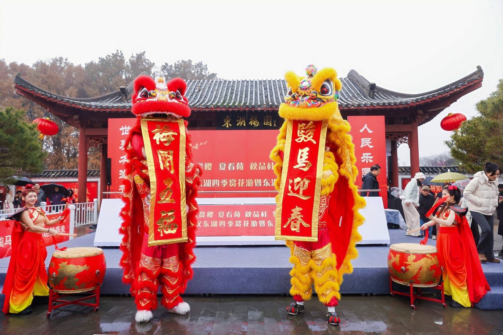 梅园开展系列趣味民俗活动,打造沉浸式文化游赏体验。春节假期,灵动热闹的舞狮表演踏着铿锵鼓点送福,梅香与年味交融。