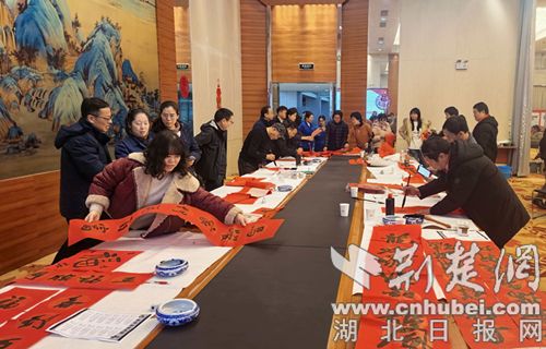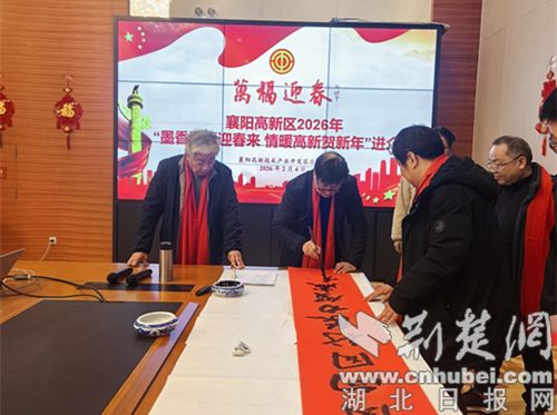 荆楚网(湖北日报网)讯(通讯员 贾思琪)2月4日下午,襄阳高新区总工会在博亚精工装备有限公司开展2026年“墨香送福迎春来 情暖高新贺新年”进企业活动,活动邀请襄阳知名书法家与我区书法爱好者共同现场书写春联,为广大企业一线职工送上新春祝福。比亚迪、楚能新能源、江山重工、骆驼集团等多家企业职工代表共同参与。