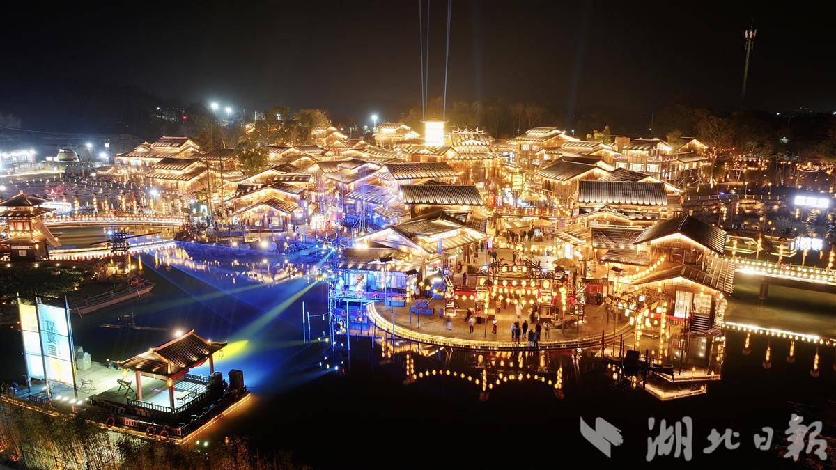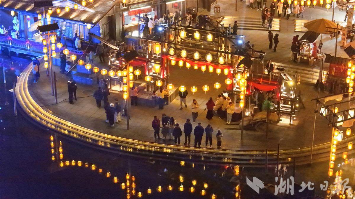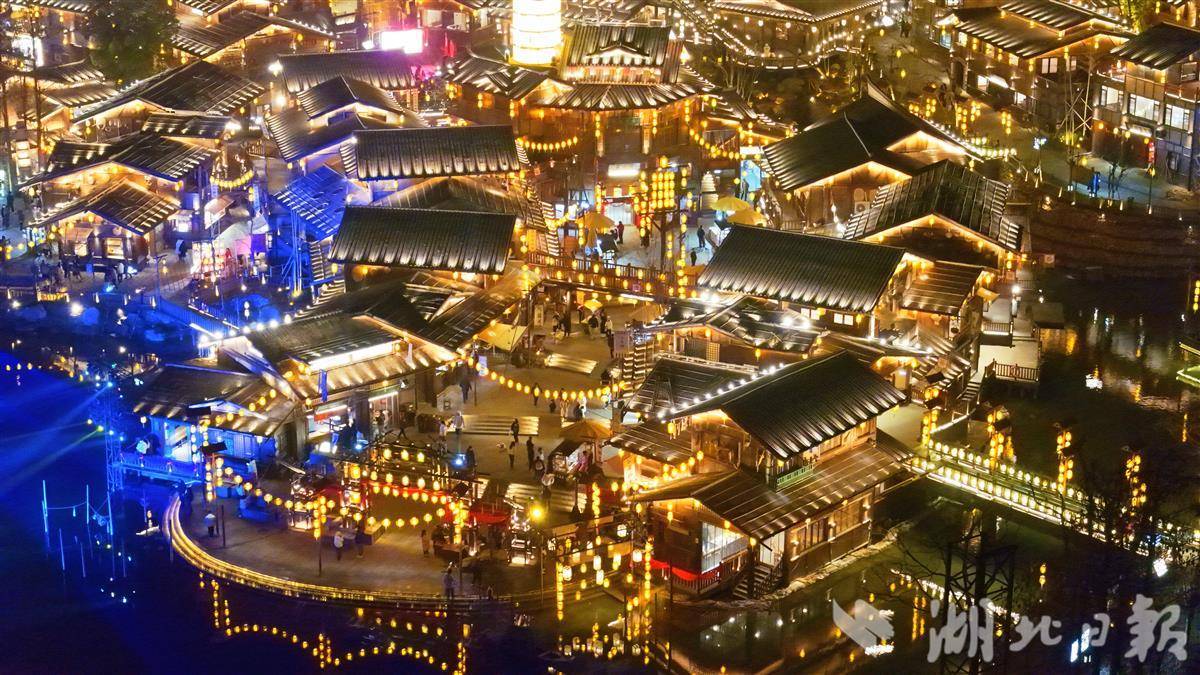 夜幕下的武汉江夏里老码头文化美食街区,灯火织就璀璨画卷。古韵屋檐与现代霓虹交相辉映,食肆的暖光与游人的笑语交织升腾,一副灯火不夜天、人间烟火浓的景象。江夏正被这璀璨的灯光与升腾的香气谱写成新时代的繁华诗篇。(湖北日报全媒记者 陈少哲 摄)