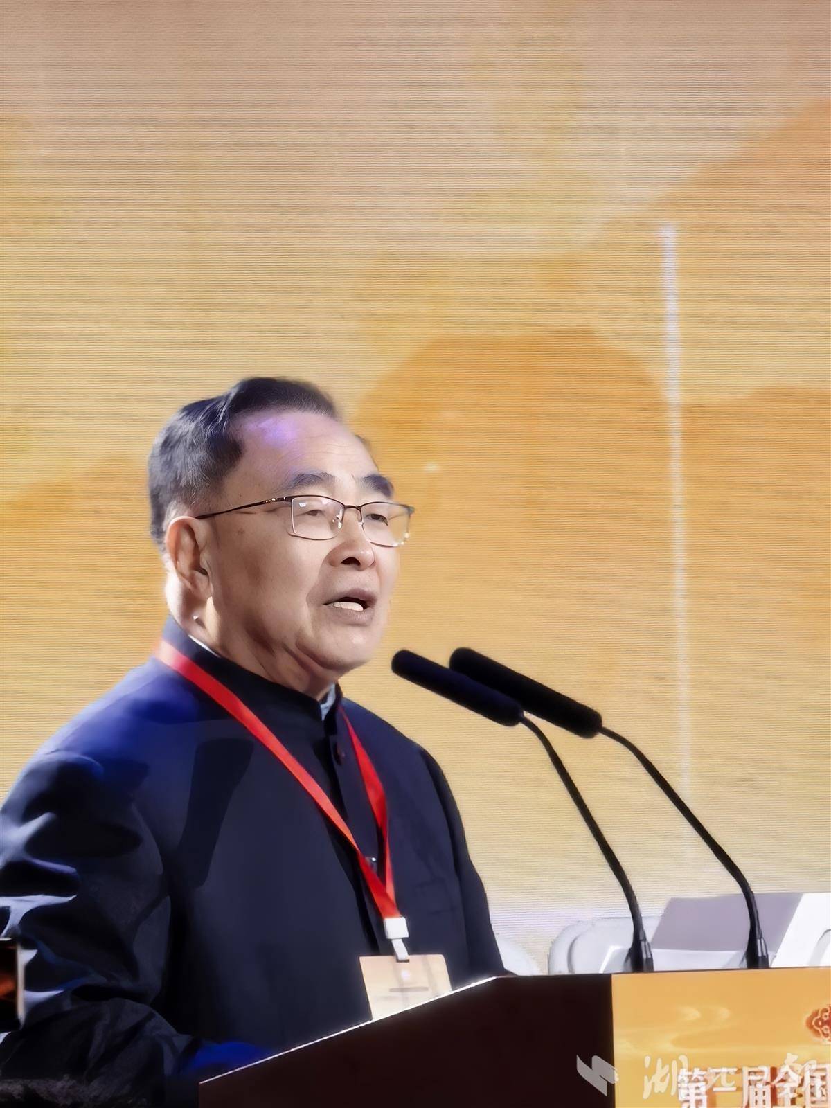 中国工程院院士、国医大师、大赛总顾问张伯礼致辞。(湖北日报全媒记者包东喜摄)