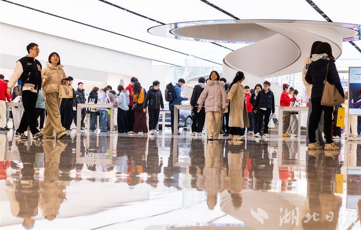 2月8日,消费者在武汉武商梦时代休闲、购物。春节临近,武汉各大商圈通过打造特色主题活动、丰富多元休闲场景、推出特色消费体验等方式汇聚客流、提振人气,激活新春消费市场。(湖北日报全媒记者 薛婷 摄)