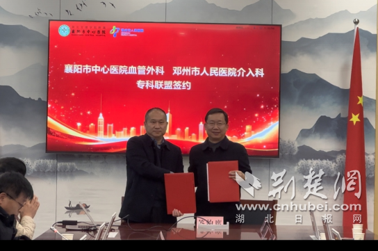 荆楚网(湖北日报网)讯(通讯员 冯津芝)近日,为推动优质医疗资源跨区域流动,襄阳市中心医院血管外科与邓州市人民医院介入科在邓州市人民医院举行专科联盟签约仪式。