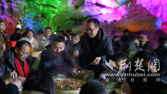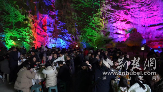 荆楚网(湖北日报网)讯(通讯员 高晗 杨科 胡冰清)2月8日,京山首届溶洞农家宴在焕新升级的空山洞景区热闹开席。一场融合溶洞奇景、乡土美食与新春年味的特色活动,吸引300多名游客前来体验。
