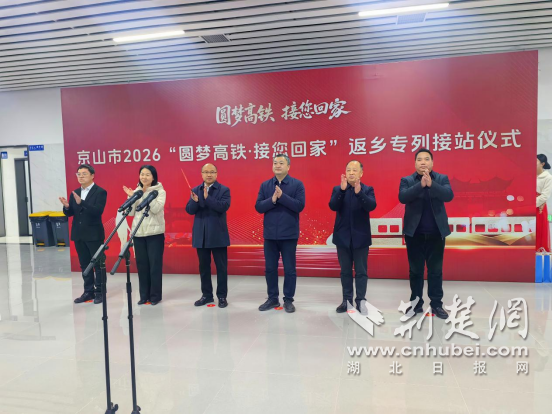 当晚,京山南站换乘中心灯火璀璨、暖意融融,京山市2026“圆梦高铁·接您回家”返乡专列接站仪式在这里举行。京山市委、市政府等领导到站迎接,并为返乡游子送上满载家乡情谊的新春问候与暖心礼包。