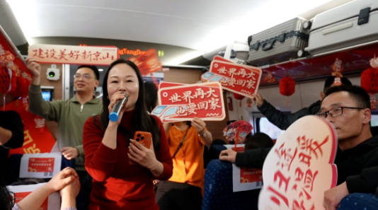 据了解,此次专列于当日15时24分从广州南站发车,直达京山南站,全程为返乡游子提供贴心服务。列车上,工作人员结合本地特色产业全方位开展城市文化推介,现场解读返乡就业创业优惠政策,并精心策划了“随车演出”“我的创业故事我来讲”等特色活动,让千里归途充满温情与希望。