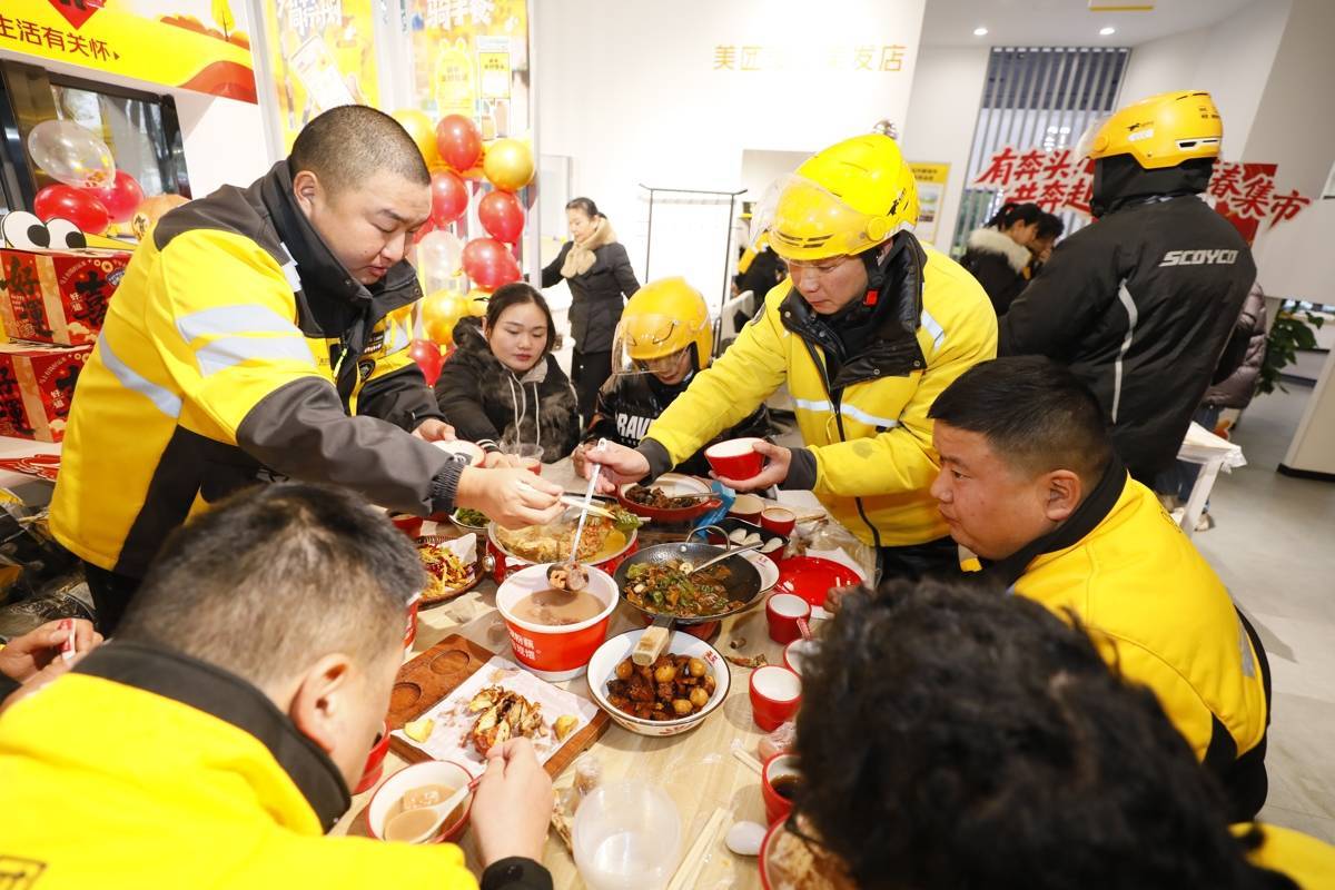 2月9日,农历腊月二十二,美团武汉工会主办“2026年骑手团年饭”活动,为武汉光谷及周边的美团骑手送上一桌桌温馨满满的“骑手团年饭”。
