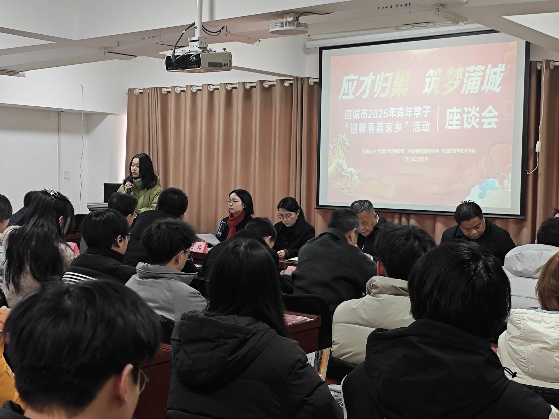 2月5日,由应城市人力资源和社会保障局、共青团应城市委、应城市科学技术协会共同主办的2026年“应才归巢 筑梦蒲城”青年学子“迎新春看家乡”活动圆满举行。50名应城籍返乡青年学子代表齐聚一堂,通过座谈交流与实地参观,亲身感受家乡日新月异的发展活力,共探就业创业新机遇。