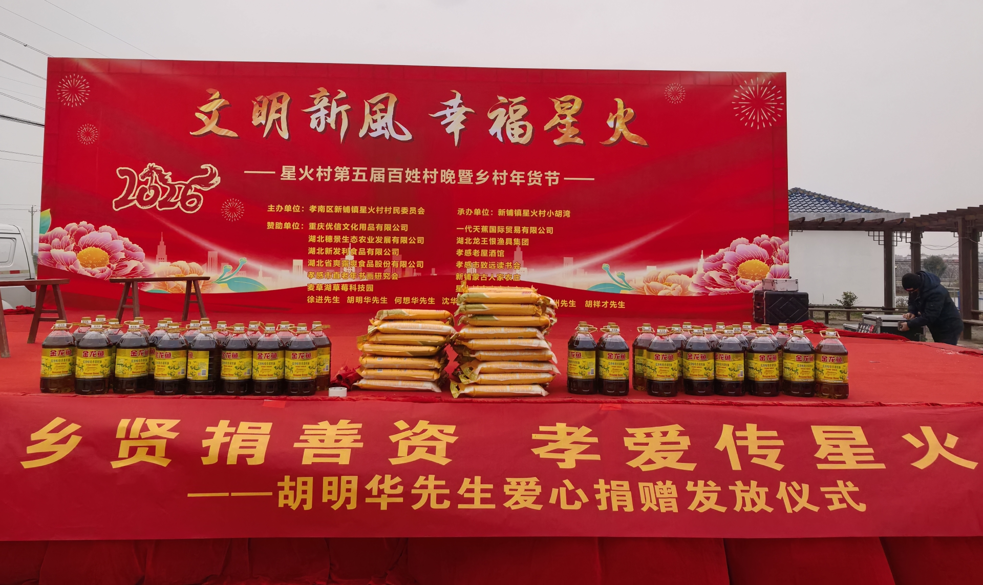 恰逢星火村第五届百姓村晚暨乡村年货节举办,胡明华得知消息后,第一时间慷慨解囊,捐资20000元,用于采购大米、菜籽油等生活物资。在村委会的精心组织下,这些满载爱心的物资被一一送到120户困难群众手中,为他们送去了新春的祝福和冬日的关怀。这份善举,不仅缓解了困难群众的生活压力,更在全村传递了正能量,赢得了乡亲们的广泛赞誉。