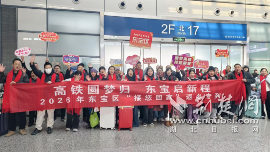 荆楚网(湖北日报网)讯(通讯员 潘琴 王宇凡)又是一年返乡时,春风送暖归乡路。2月9日13时27分,G3382次高铁从上海虹桥站缓缓驶出,载着荆门市东宝籍外出务工人员驶向家的方向——荆门西站。这趟“圆梦高铁·接您回家”返乡专列,是沪渝蓉沿江高铁开通以来,荆门市东宝区组织的首趟从上海开行的返乡专列。