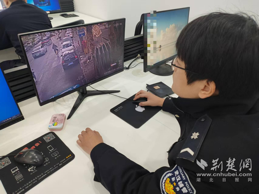 “您别着急,我们马上帮您找!”接警后,辅警李方立即安抚牛先生情绪,一边耐心询问其骑行的具体路线、时间节点及手提袋特征,一边快速梳理关键信息,为后续查找划定范围。考虑到事发路段人流车流较大,失物可能被他人拾取,丹水所迅速启动视频查找机制,立刻调取了新荣天街至新荣轻轨站沿线的公共视频录像。通过逐帧细致排查,画面清晰显示:牛先生骑行至新荣轻轨站附近时,蓝色手提袋从电动车踏板滑落至路面,不久后被一名骑自行车的婆婆拾起。