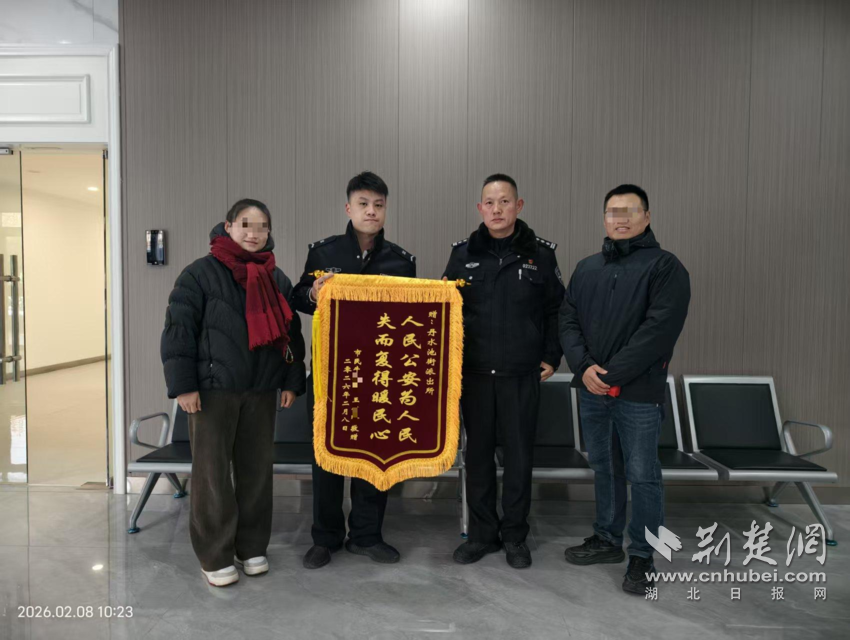“本来以为找不回来了,没想到你们这么负责!”领回失物时,牛先生的感激之情溢于言表。这份感动并未止步,2月8日上午,牛先生特意定制了锦旗送到丹水池派出所。“这面锦旗是我的一点心意,你们让我感受到了警察同志的担当和温度!”牛先生动情地说。