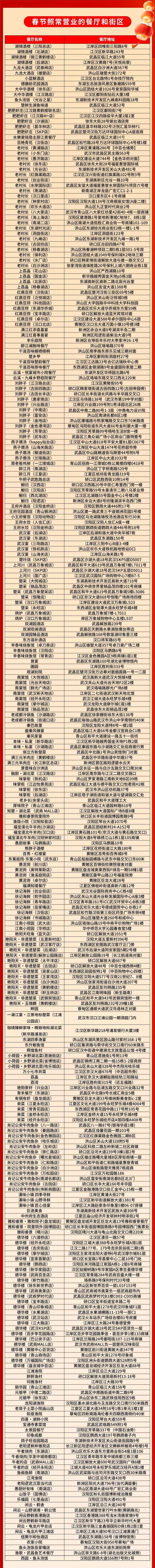 湖北日报讯(记者李朝霞)春节将至,年味正浓。记者从武汉餐饮业协会获悉,今年春节,全市湖锦酒楼、小蓝鲸酒店、大中华酒楼等270多家餐厅不打烊,热情迎接本地市民和外地游客,让大家品尝更多地标美食和精致楚菜。