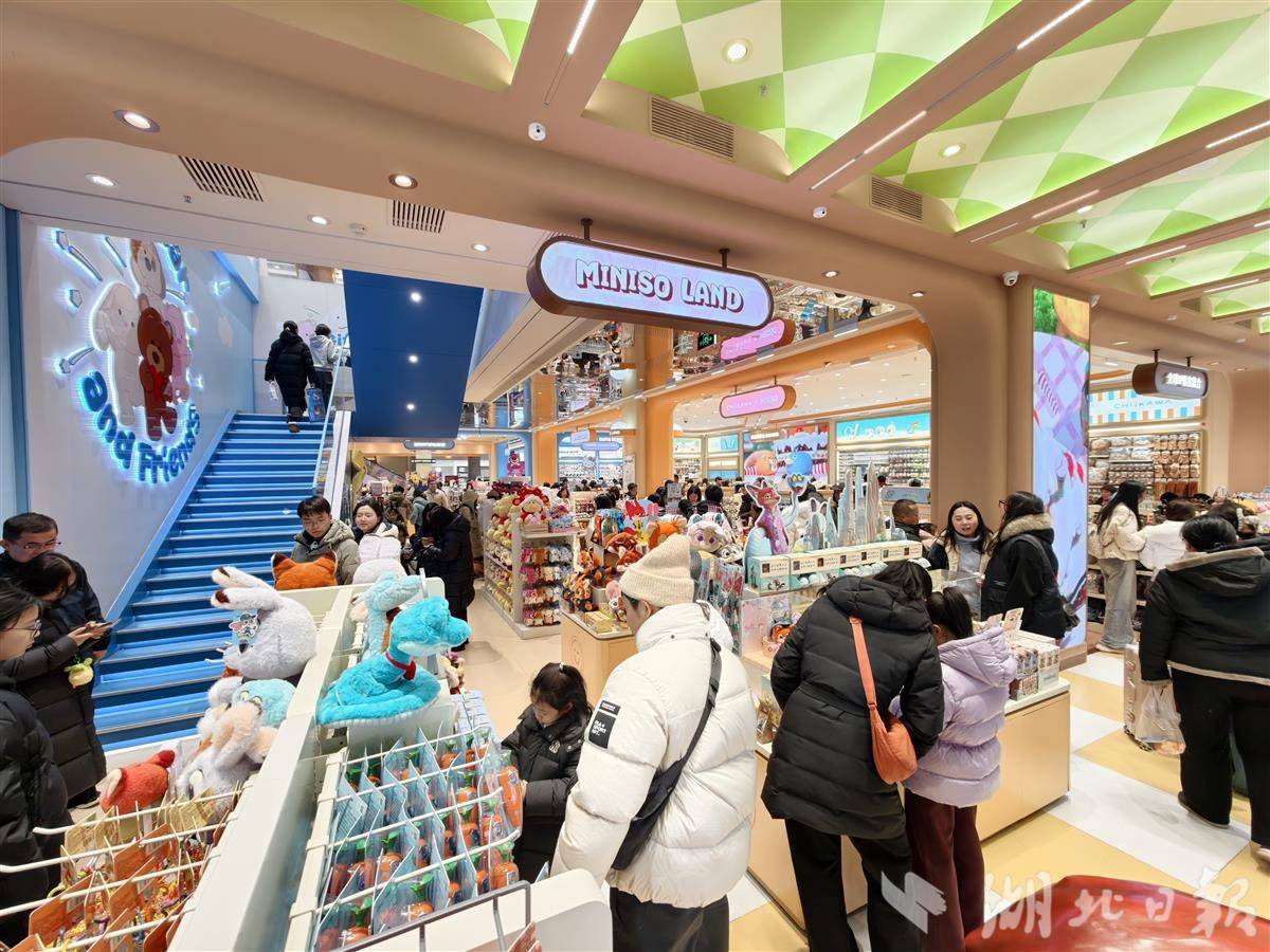 2月8日,腊月廿一,武汉江汉路步行街人流如织。糖炒栗子的香气混着奶茶甜味飘在空气里,而在汉口Stay附近,另一种热闹正悄然升温——二次元潮玩店里,扫码声清脆,年轻人把一枚枚徽章、一只只毛绒玩偶放进购物袋。