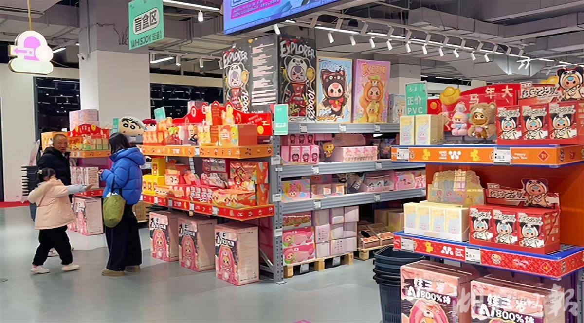 “Labubu的毛绒新品昨天刚上架,今天就卖空了!”飞社长门店主理人谢逸飞一边整理货架一边说。他告诉记者,春节前后客流是平时的两三倍,“学生放假了,有时间出来。不少人从宜昌、荆州,甚至长沙专程赶来。”