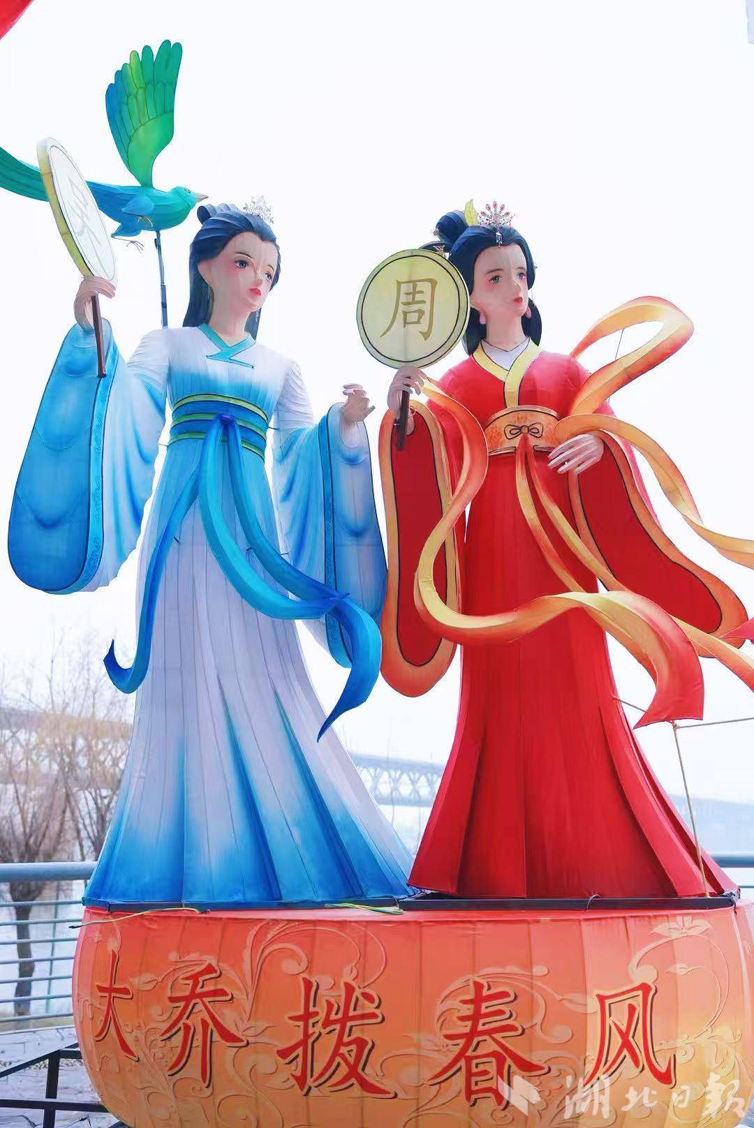 江汉朝宗、高山流水、一马晴川、凤舞九天、龟蛇起宏图……现场五大主题灯组紧扣“知音、三国、长江”三大文化主线,一步一景,拍照即大片。四大美人——貂蝉、甄宓、大乔、小乔,依江而立,裙袂飘飘,栩栩如生,吸引不少市民游客拍照打卡。
