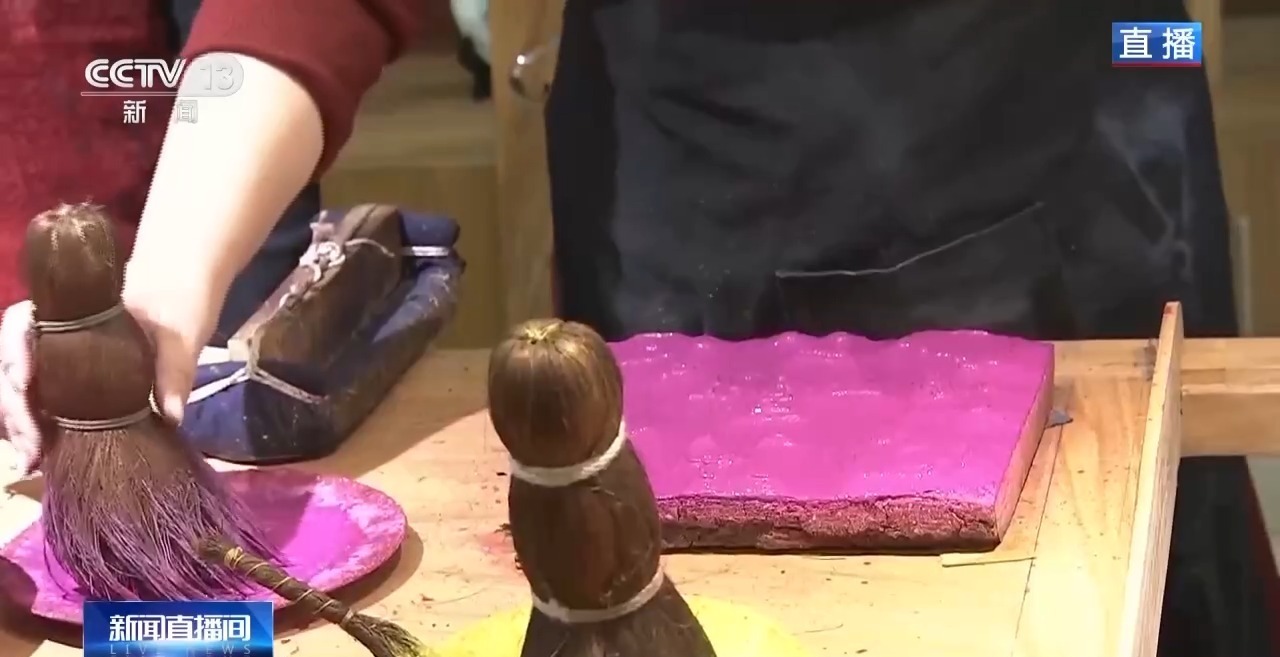 非遗传承人还带大家沉浸式体验年画制作。年画要经过绘稿、刻板、印刷三道工序,每一道都蕴含着智慧。