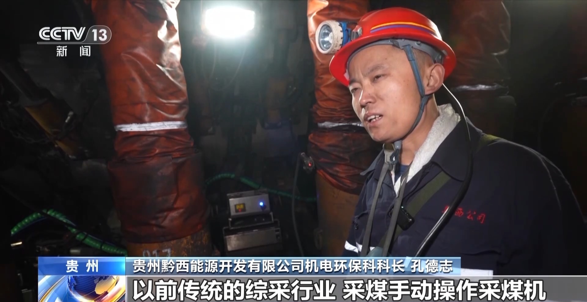 贵州黔西能源开发有限公司机电环保科科长 孔德志:这是智能跟机移架设备。以前传统的综采行业,采煤要手动操作采煤机,手动移架、推溜。现在用上了自动跟机移架设备后,采煤机自动割煤,通过位置传感器精准定位采煤机的位置,把相关数据传输到控制器,通过5G信号网络传输到控制中心,随后控制中心下达指令,对单台的液压支架进行自动移架操作。现在不需要人工操作,既省劲又安全,还大幅提高了综采效率。