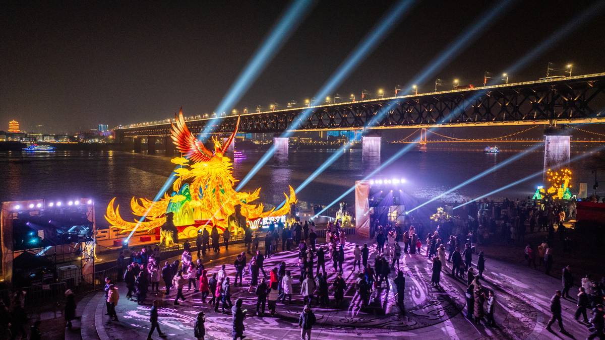 2026年2月10日晚,2026武汉新春晴川灯会在武汉市汉阳江滩大禹神话园璀璨启幕。其中高达12米的“凤舞九天”与对岸黄鹤楼遥相呼应;《长江幻境》沉浸光影秀,以龟山电视塔为背景,现场演绎长江文明。灯会核心区域南起朝宗门、北至晴川门,全长约1000米,占地9000平方米。打造了“繁盛江城·东方画境”“秘林探奇·大禹秘境”“荆楚浪漫·晴川诗境”三重盛境,串联“小年”“春节”“元宵”三个周期,采用“白+黑”运营模式,每日中午12时至晚上10时免费向游客开放。(湖北日报全媒记者 何宇欣 摄)