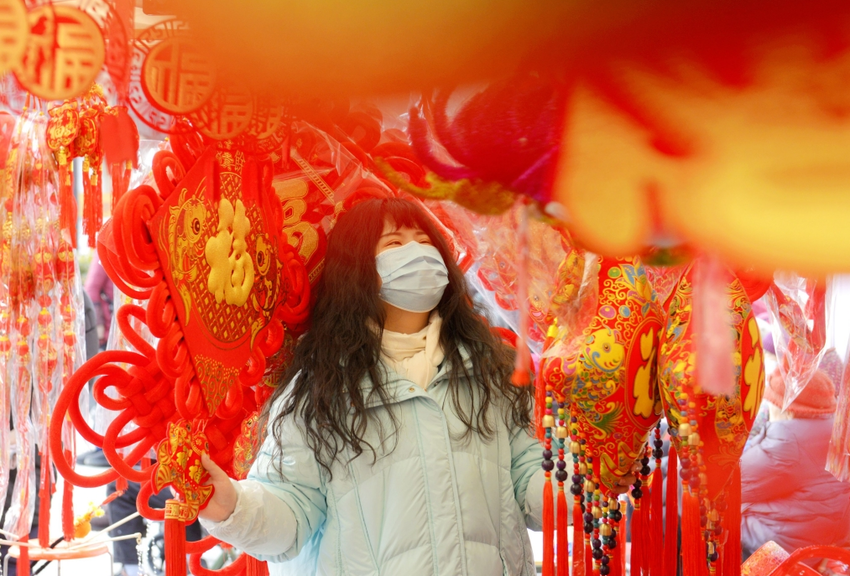 吆喝声、欢笑声、讨价还价声交织在一起,勾勒出一幅热闹的新春民俗画卷。
