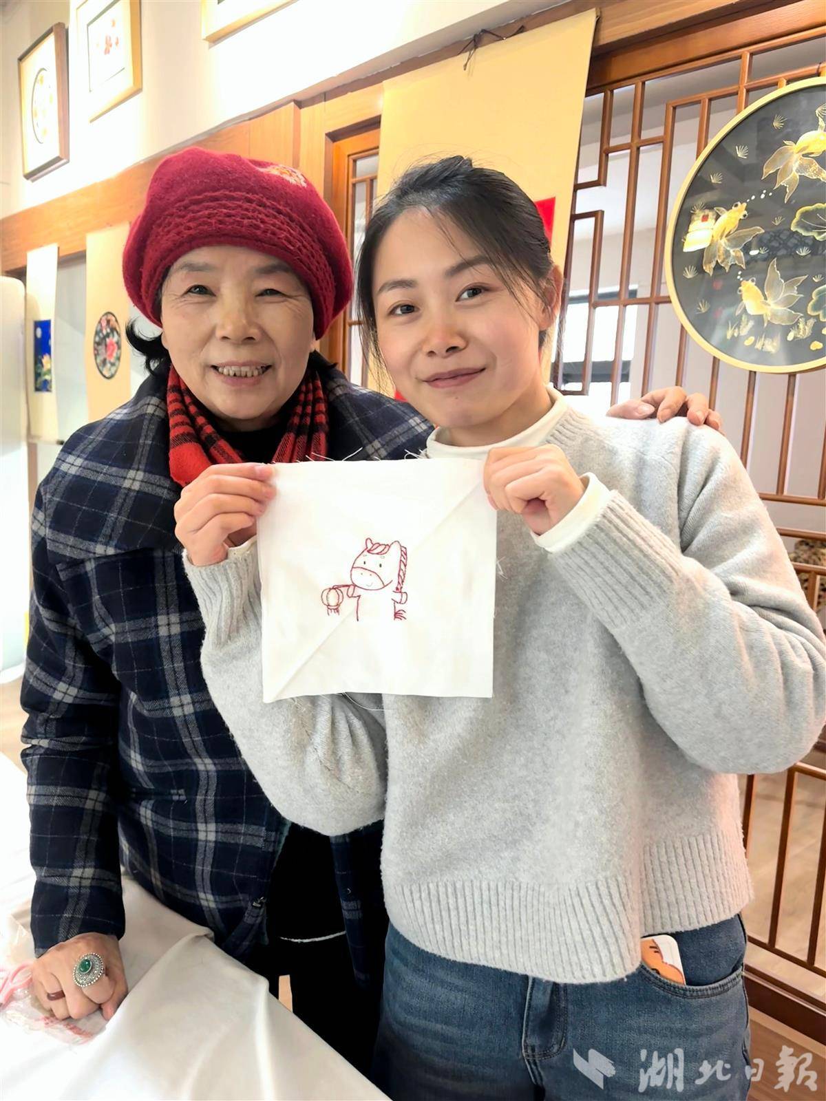 顾客找王子怡定制的新年《龙马精神》福字汉绣。湖北日报全媒记者王艳华 摄