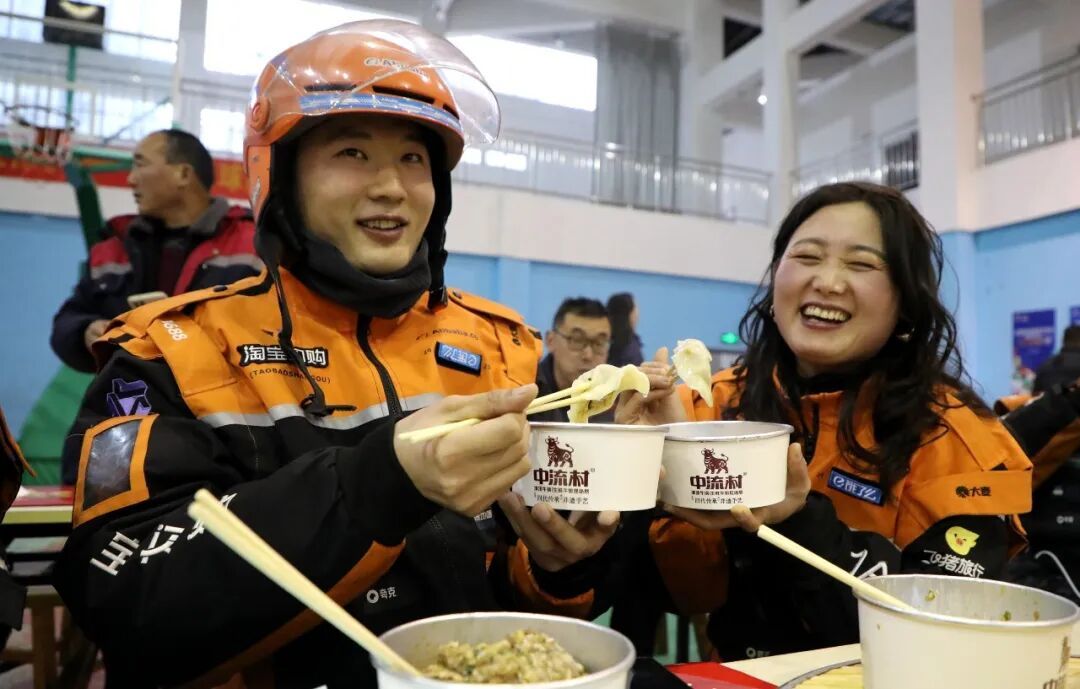 2026年2月10日,在安徽省阜阳市颍东区工人文化宫,快递员、外卖员等新就业形态劳动者和工作人员一起参加“情暖小年·饺香传情”包饺子活动。图为外卖员正在吃饺子。(宿飞/人民图片)