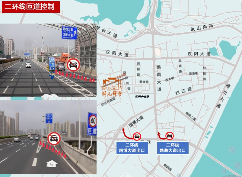 2月16日(除夕)22:00至17日(初一)18:00、2月20日(初四)22:00至21日(初五)18:00,汉阳区归元寺路、西桥路、翠微路、归元寺北路、归元寺南路、肖家湾路禁止机动车及非机动车通行和停放。
