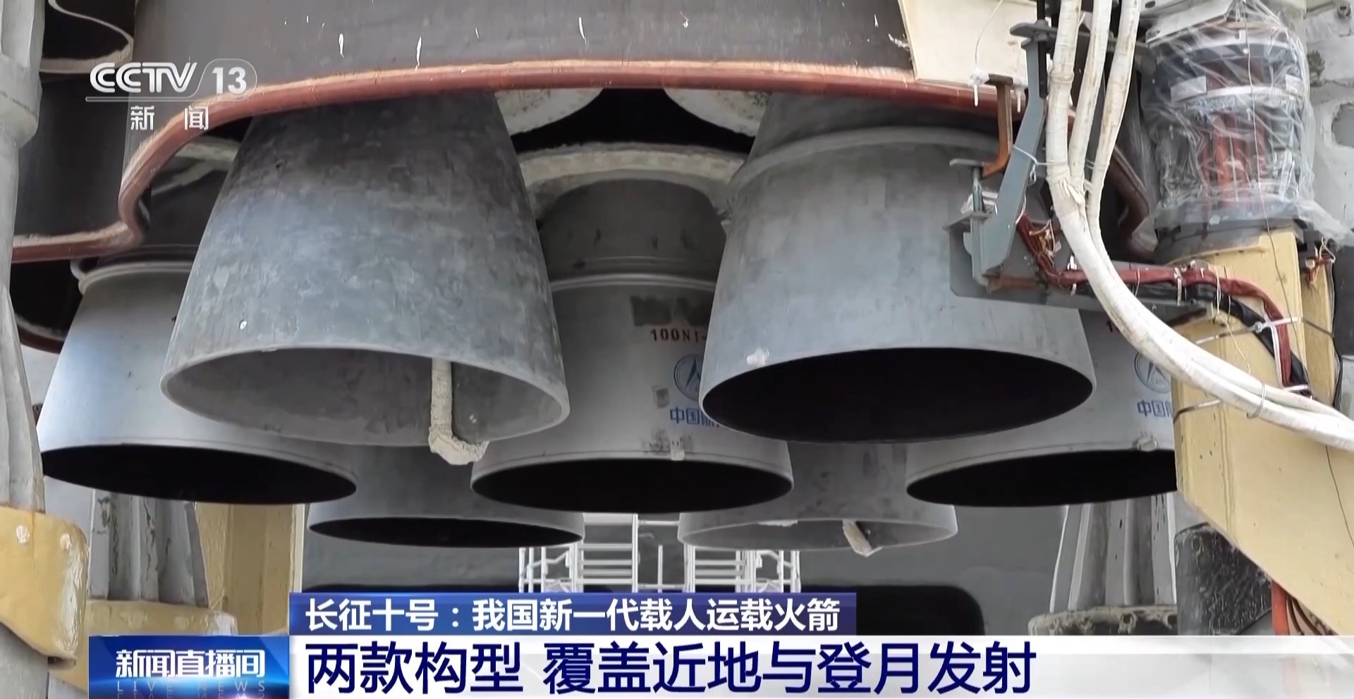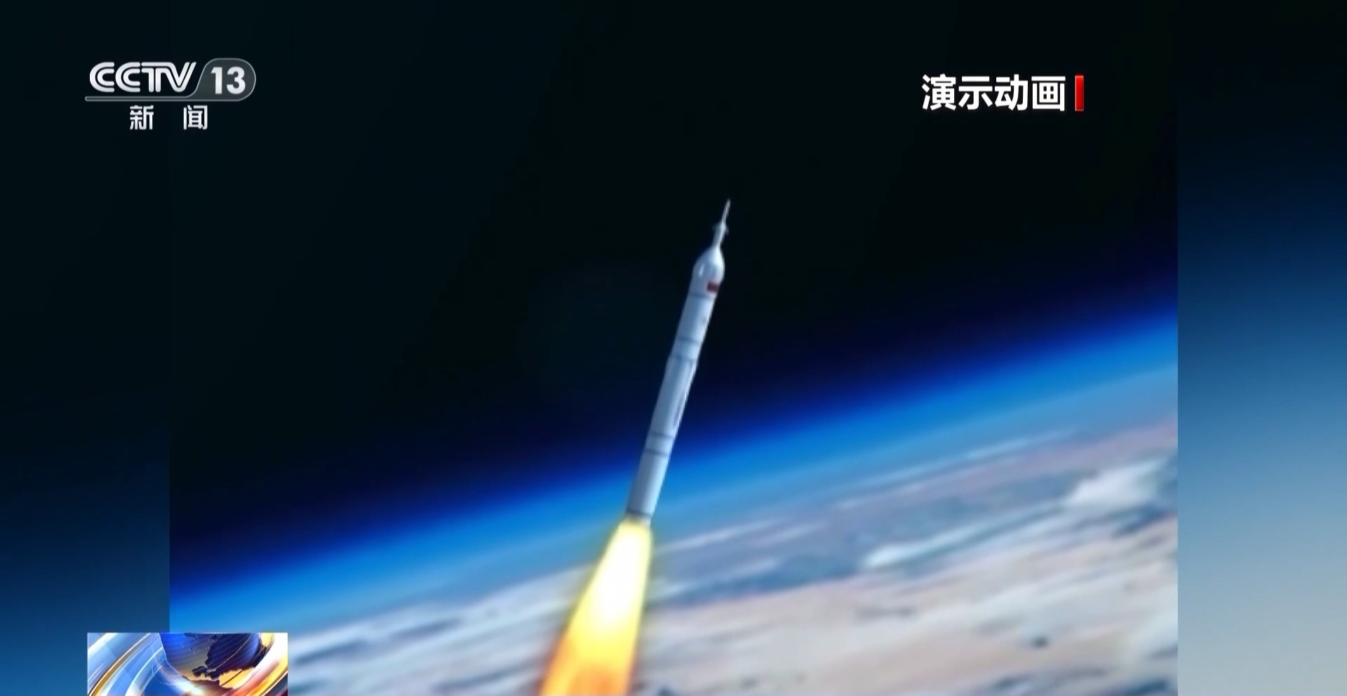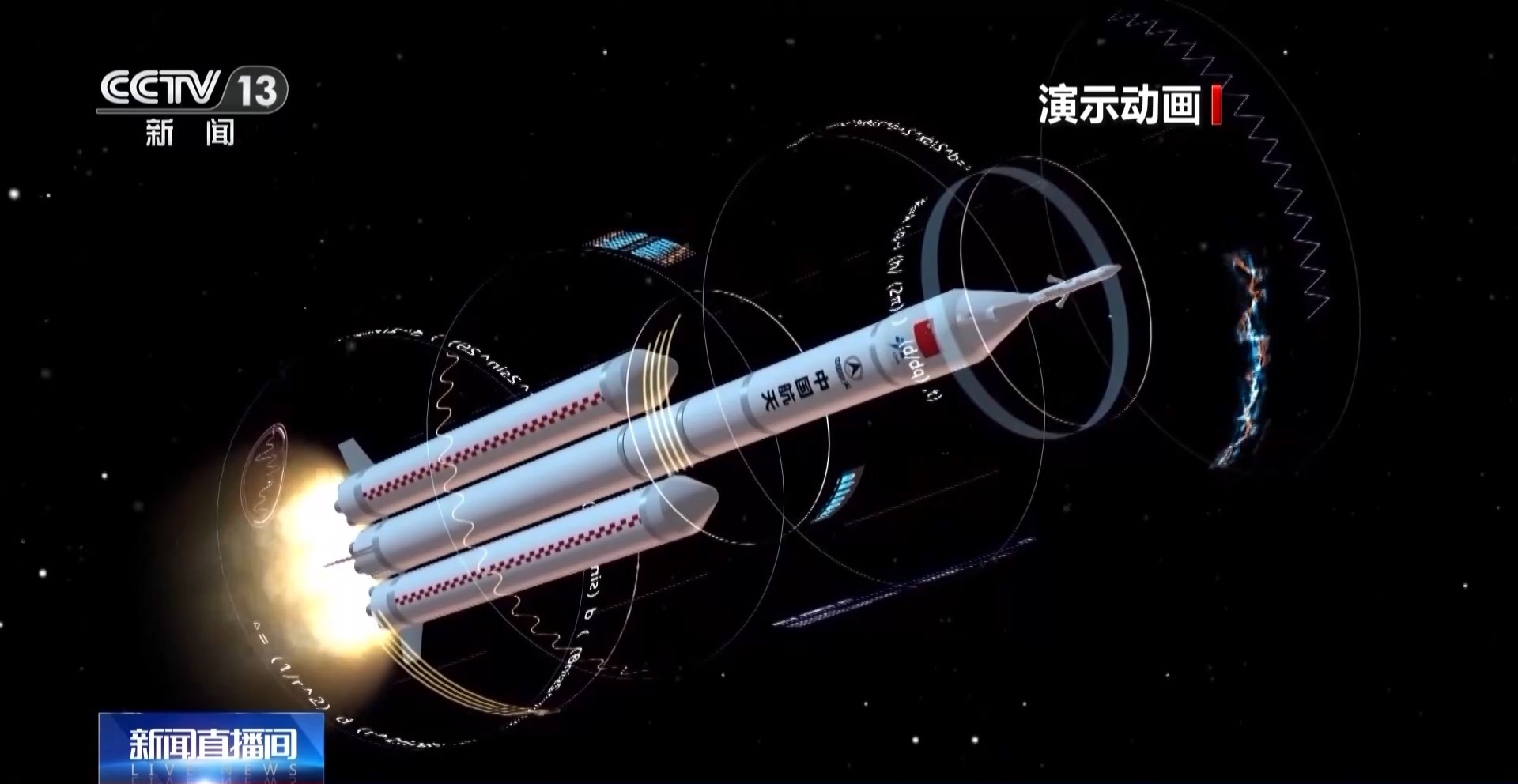 中国航天科技集团 杨树涛:整个火箭的起飞规模大约是314吨,这个相对于我们正式任务状态做了一定的缩减。为了适应这样的规模,我们减少了两台发动机。为了模拟整个返回过程中,由于我们箭体底部朝前,整个气动外形跟正式任务的一致性,我们做了两个发动机的模拟产品,然后放在了发动机舱。